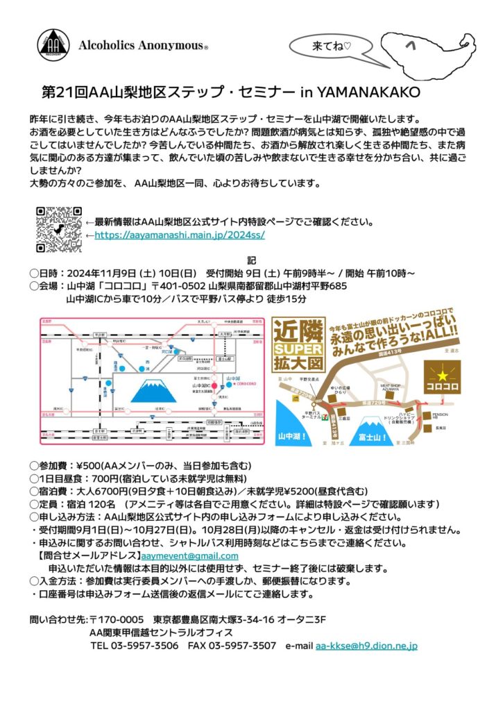 「AA山梨地区ステップ・セミナー」旅のしおり 2024年10月31日版!