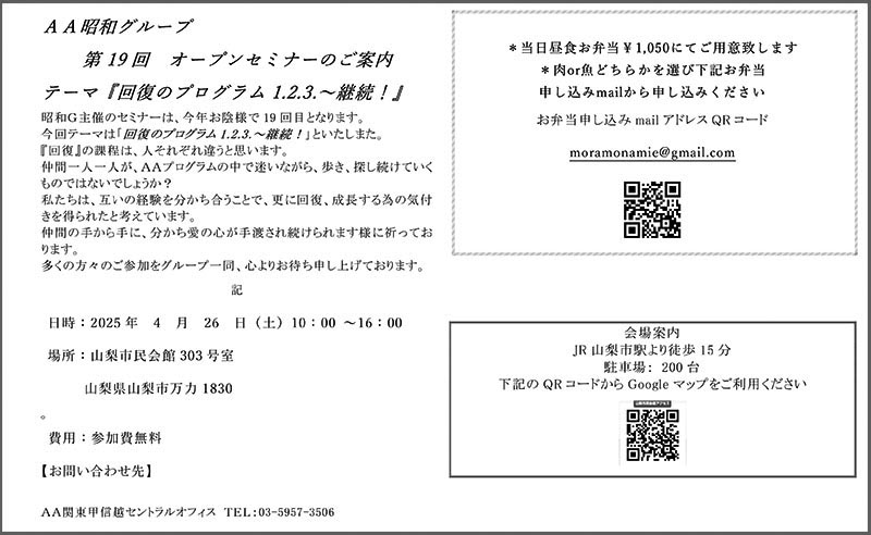 問合せ先:AA関東甲信越セントラルオフィス